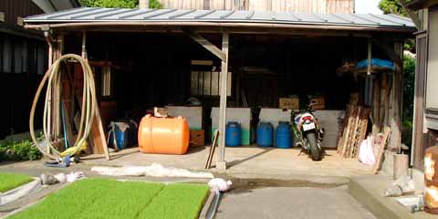 手前に見えるのは稲の苗床.有機栽培にて米つくってるとの事.ご飯のとき自家製のその米が出てきたんだけど,ごっつ旨い.普段ご飯はおかわり滅多にしない人だけど,このときは炊飯器空になるまでおかわりして,動けなくなりました.(ぁ